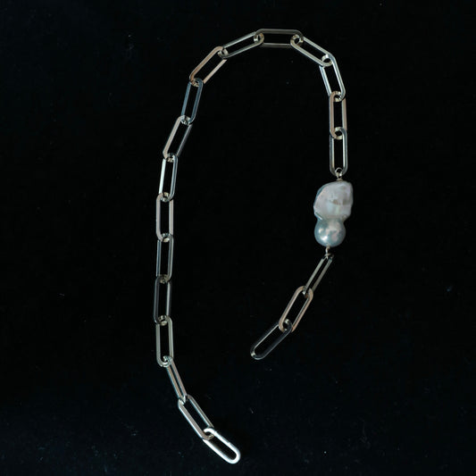 Rika Silver Chain with Big Baroque Pearl Necklace