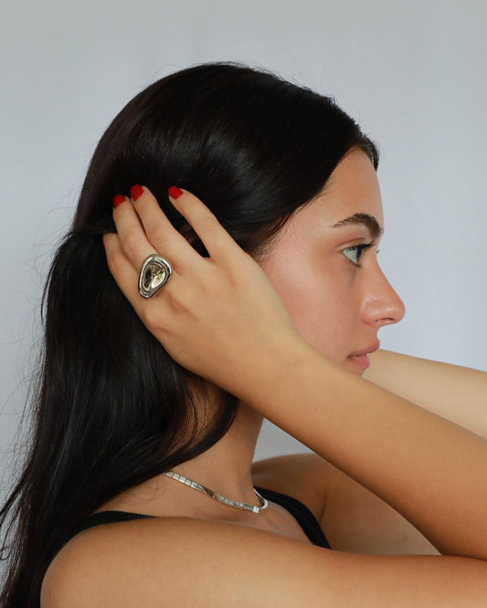 Jovita Mirror Statement Ring Polished Sterling Silver Dome