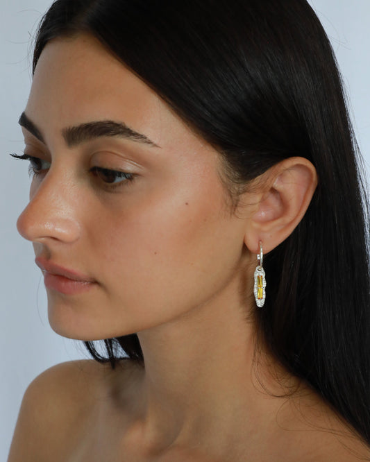Nadia Refined Yellow Zircon Sterling Silver Earrings Intricately Set Stones